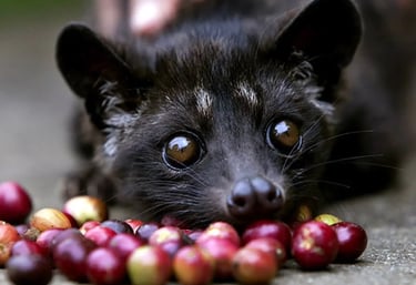 But why is it so expensive? Well, the reason of the extreme price is the production method. The coffee beans are free range and the civet cats 'Work' on a large coffee plantation. So finding civet poop is not very easy. You need to spend a lot of time in the forest to find it and collect a decent amount. Therefore the wage cost is high.